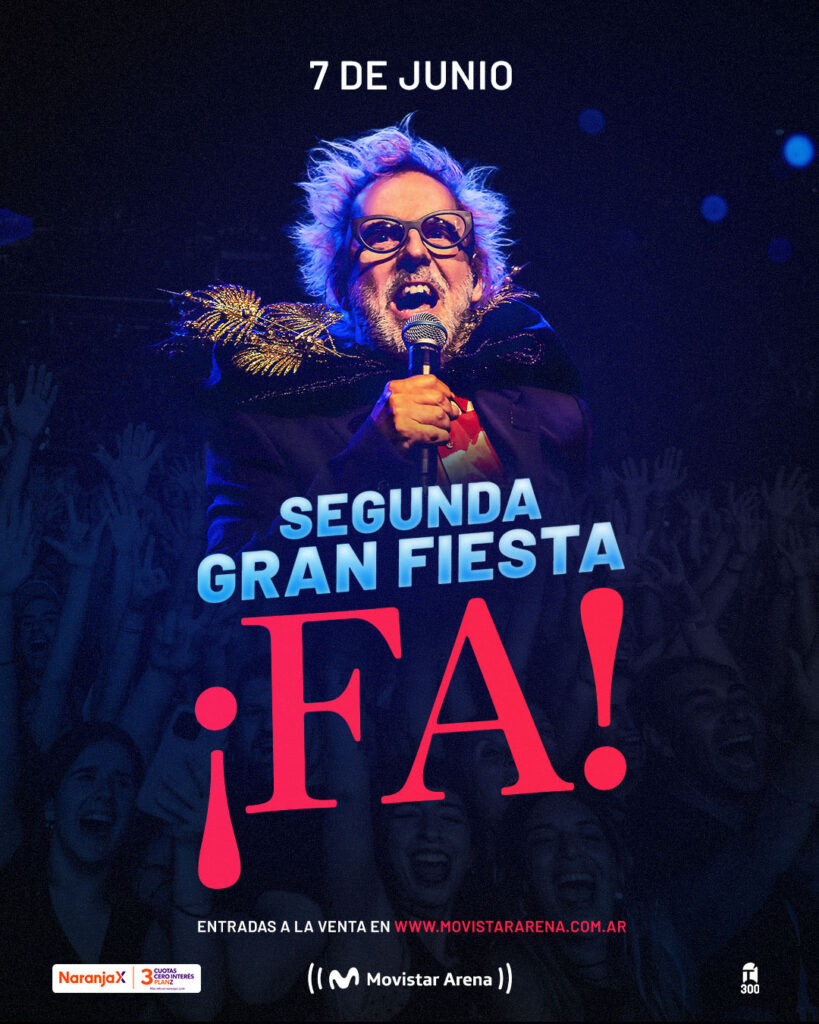 La segunda Gran Fiesta ¡FA! vuelve al Movistar Arena el domingo 7 de junio de 2026 para una nueva edición de su celebración colectiva. Luego de un debut inolvidable a estadio lleno, la fiesta conducida por Mex Urtizberea se prepara para sorprender una vez más.